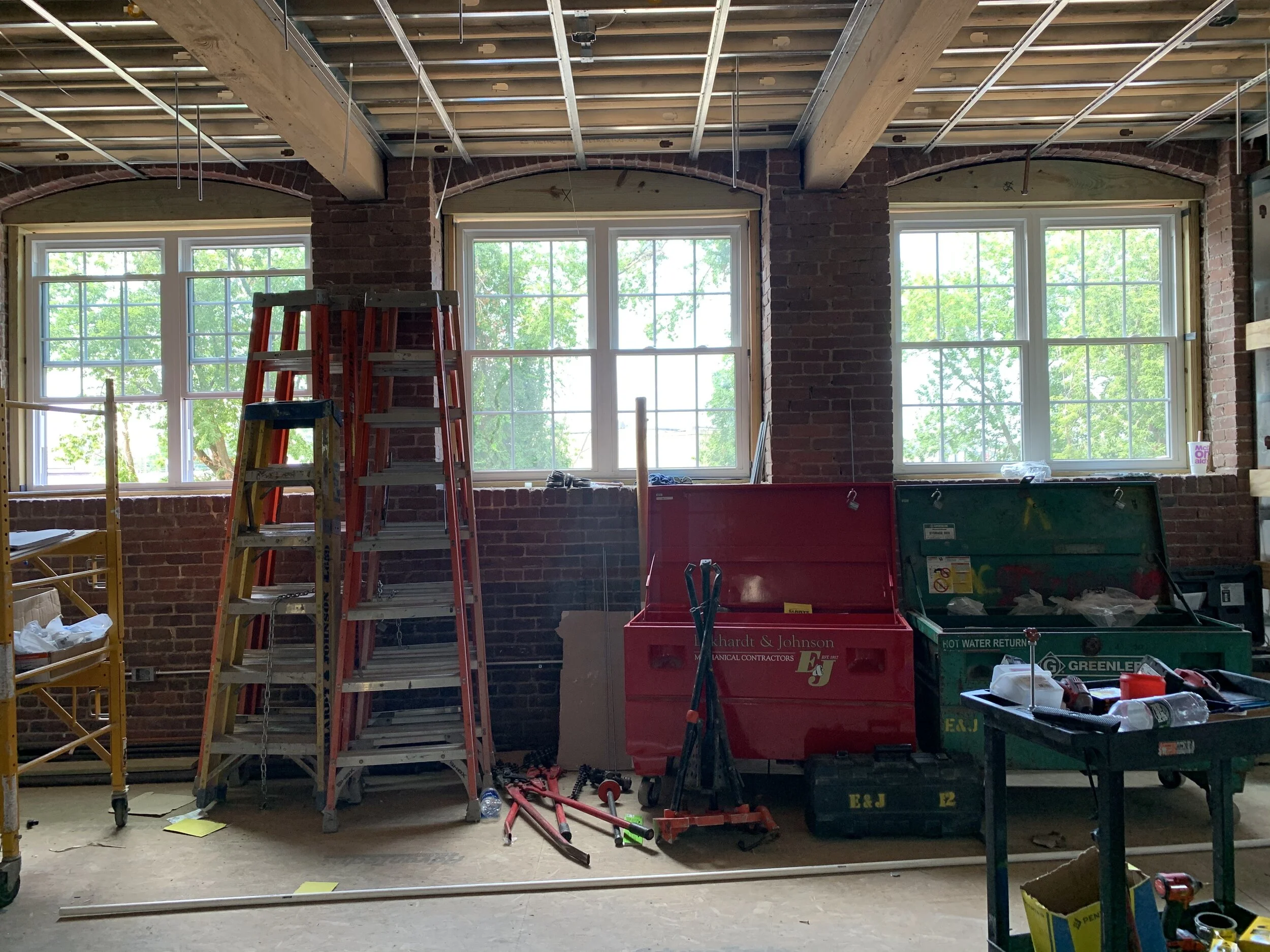 With all the running around getting things done at the Factory and we have yet to give a summer update. The team at Eckman Construction is doing a phenomenal job keeping us on track with our timeline and we are thankful! The colossal task of window installation is almost complete and we are thrilled with how they look. Things are starting to take shape on the interior and we are starting to see the drywall being installed.